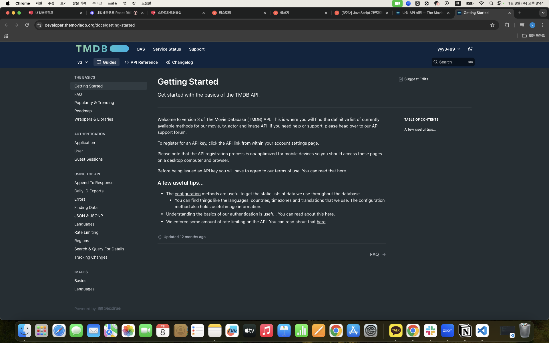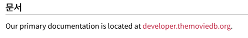 API Reference를 클릭해봅시다. 클릭하여 한국어로 바꿔봅시다 . 바꿔서 왼쪽 목록을 쭉 내려보면 내가 찾는 데이터중 인기있는 영화목록